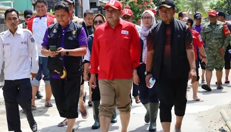 Camat Jayanti Dampingi Ketua PMI Tinjau Banjir dan Dapur Umum di Cikande